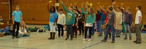 Am letzten Tag vor den Herbstferien hat unsere Schule das gemeinsame Herbstsingen in der schön geschmückten Mehrzweckhalle durchgeführt. Dafür haben die Schülerinnen und Schüler aus den Klassenstufen 2 -4 im Unterricht verschiedene Vorträge erarbeitet. Auch das Orchester und der Chor der August-Lämmle-Schule haben an dem bunten Programm mitgewirkt. Es gab tolle Gedichtvorträge, schöne Lieder und kurze „Aufführungen“ zu sehen. Zwei Klassen präsentierten sogar in englischer Sprache.